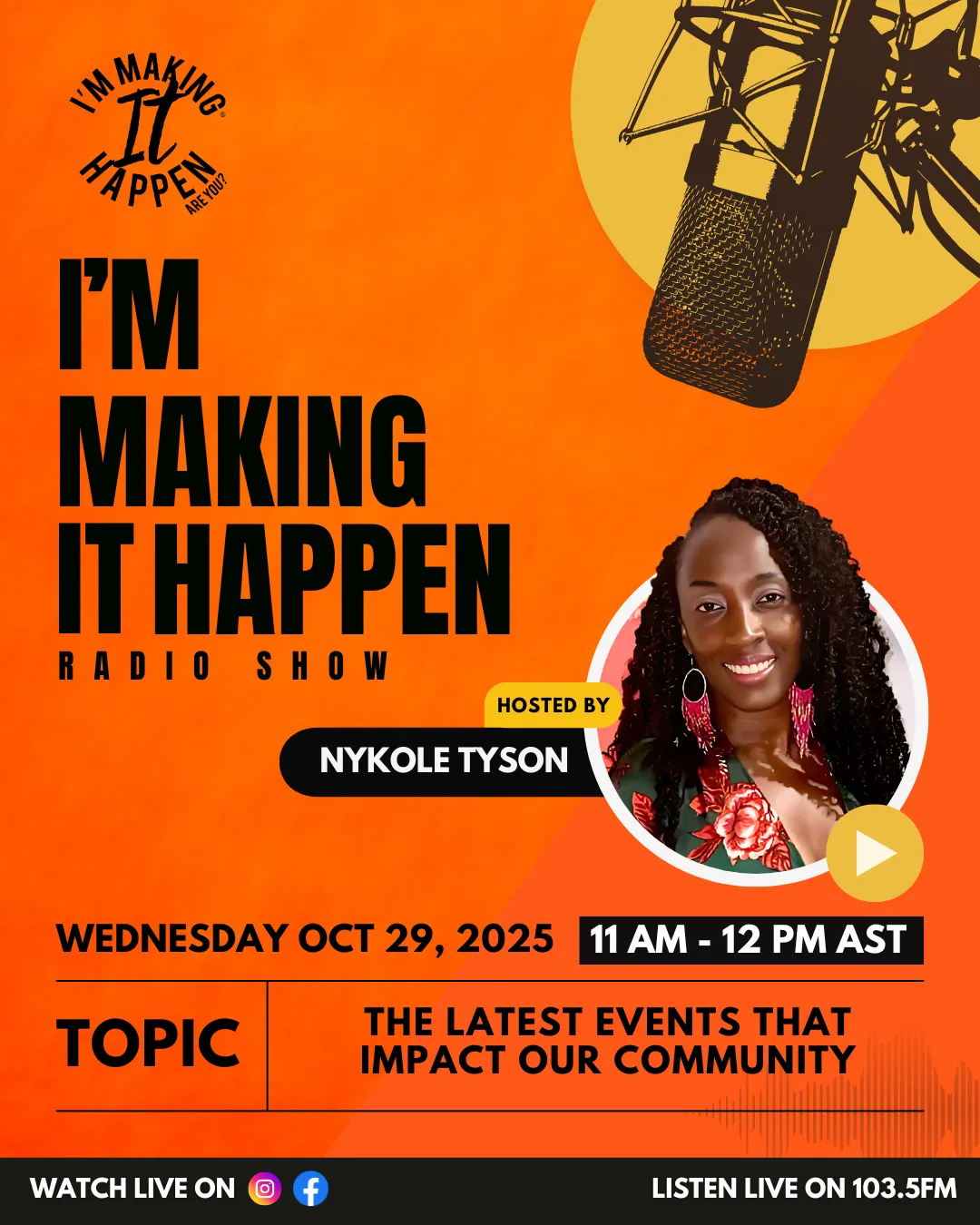 On this episode of the I’m Making It Happen Radio Show, Nykole Tyson discusses the latest events that impact our community — from personal growth and business to culture and change. It’s all relevant to us, whether we make it happen individually or together.